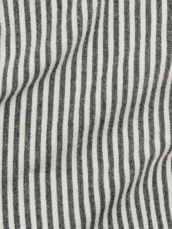 This classic black and ivory railroad stripe fabric is made from 100% organic cotton. Weighing 215 gsm, this fabric has a soft hand with a moderate drape and features 3/16" vertical stripes. It's perfect for creating fringe details and for sewing projects like drawstring pants, summer dresses, or stylish vests. This fabric is a part of the Ebony and Ivory Collection.