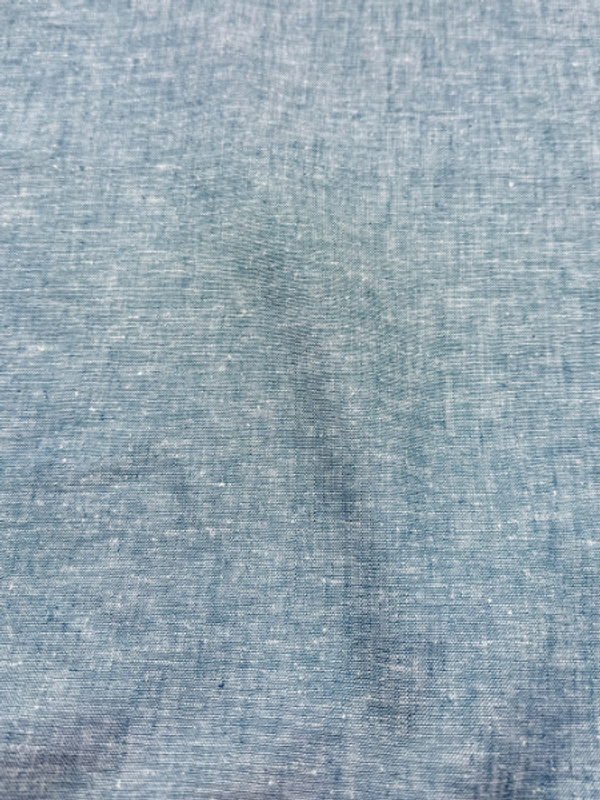 This two-tone linen fabric, woven with yarns in ciel blue and classic ivory. This is a dress-weight linen, weighing 190 gms, has a moderate drape with light crispness, making it ideal for garments with light structure. Sew a jacket, pleated skirt, or oversized blouse.