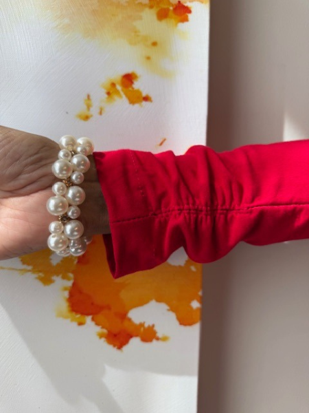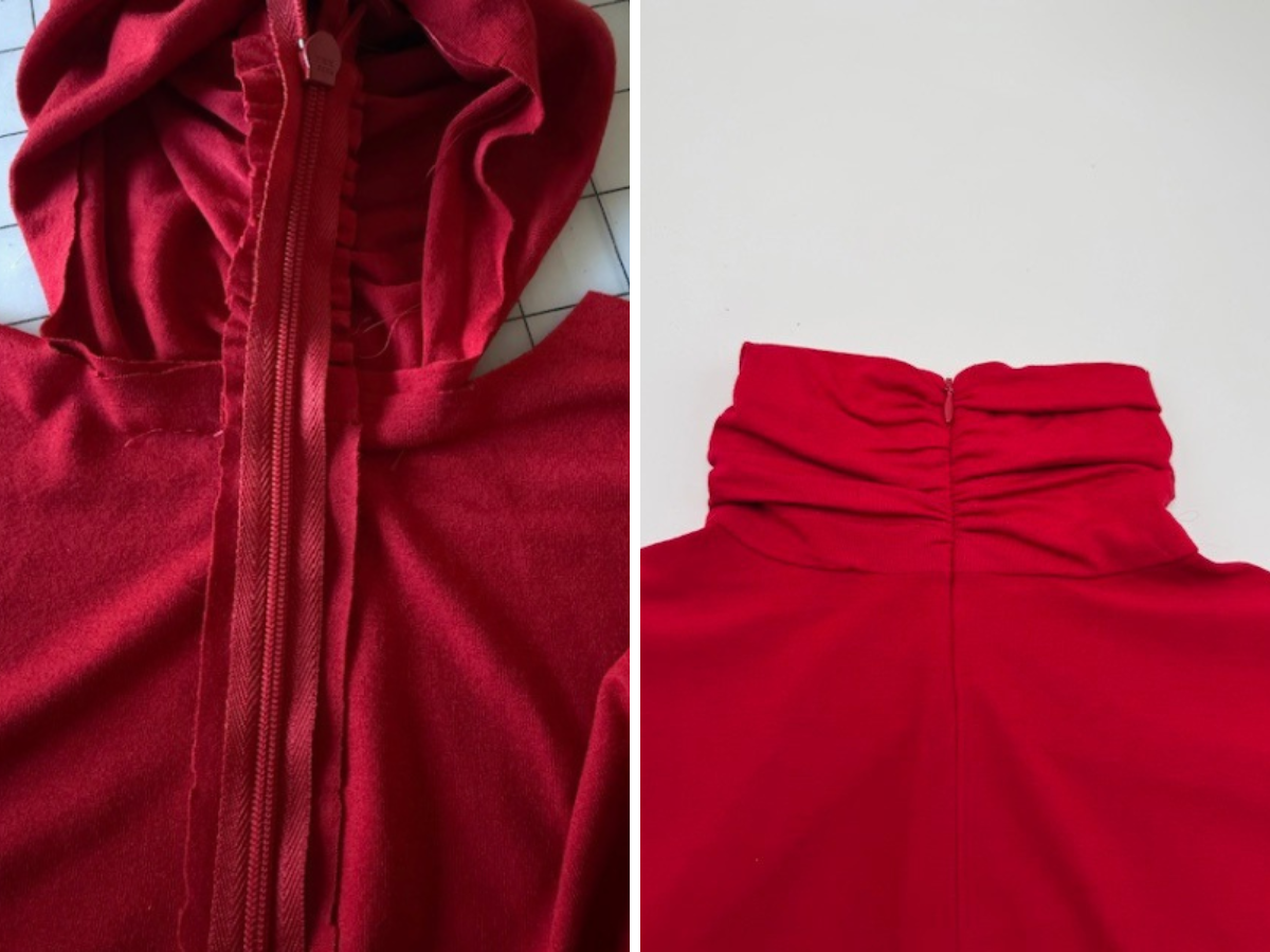I chose not to include the thumb openings. Instead, I added a gathering stitch and ruched the sleeves, leaving them slightly long as a fashion detail.