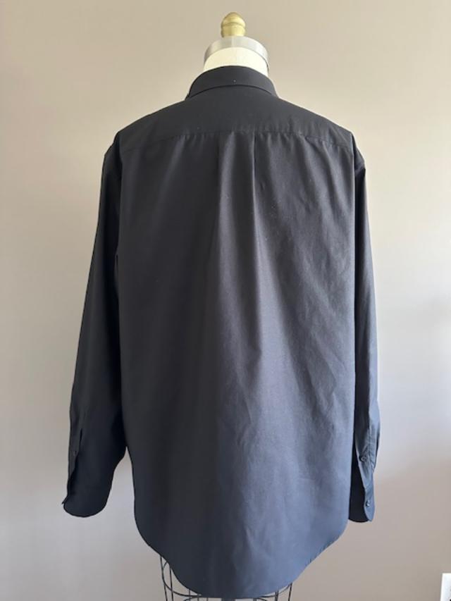 Cari says, "It feels so good to be here! Life’s taken a few zigs and zags, but I’m back under the needle and thrilled to be part of Roz’s newsletter again. My latest project was Nate’s “American-made Shirt.” Marcia and Nate were my apartment neighbors when she asked me to make a custom dress shirt for her hubby’s birthday. Nate’s all about 100% American-made clothing—well, I’m American, but let’s be honest, some countries do certain things much better! That’s why I chose this dreamy 56” black cotton stretch shirting from Sew Much Fabric. It didn’t disappoint. Even though it was deadstock from Italy by designer Burberry, we decided it still counted as “American” since I made it right here at home. ?
